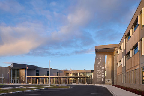 The existing Ferndale High School was originally constructed in 1936 with multiple expansions and modernizations over the years, but in 2019 the voters decided that it was time to start over and so began the design of the new Ferndale High School campus. The current student population is approximately 1,192 students. The new Ferndale High School has been designed with core facilities (cafeteria, gym, library) to support 1,600 students and classroom space for 1,375 students with a masterplan classroom expansion to house an additional 225 students in the future.